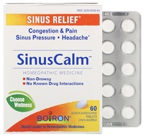 Boiron SinusCalm previously known as Sinusalia tablets are specifically designed to relieve nasal congestion, sinus pain and pressure, and headache due to the common cold or allergies.*