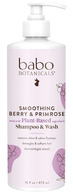 Leave the frizz behind! Smoothing Berry Primrose Shampoo & Wash is created for any hair type prone to tangles, dryness and frizz. The gentle, sulfate and silicone-free formula moisturizes and enhances shine while protecting against the elements. When in need, it doubles as a body wash. Formulated with plant-based ingredients like evening primrose oil, cocoa and shea butters to smooth and soften hair and skin. Lightly scented with a soft berry natural fragrance, that leaves hair and skin smelling fresh and clean. Suitable for all ages.