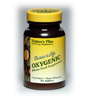 Source of Life Oxygenic is a whole food antioxidant which represents the future of antioxidant supplements. Each tablet combines the proven benefits of Vitamin C and Beta Carotene with a whole food profile representing the latest discoveries in modern scientific research. Natures Plus always uses the most current, controlled techniques to prevent the damaging effects of moisture, light and oxidation for all its products. Ingredients Vitamin A (as beta carotene) 2500 IU Vitamin C (as ascorbic acid) 100 mg Mixed Wild Berry Extract (European red wine grape {Vitis vinifera fruit], bilberry [Vaccinium myrtillus fruit], blackberry ]Rubus fructicosus fruit], black raspberry and red raspberry [Rubus ideaus fruit]) (standardized 20% [100 mg] polyphenols, 4% [20 mg] anthocyanosides) 500 mg Chinese Green Tea Extract (Camellia sinensis leaf) (standardized 20% [60 mg] polyphenos) 300 mg Horseradish Concentrate (Armoracia rusticana root) 250 mg Wild Grape Seed Extract (Vitis vinifera) (standardized 95-100% [9.5-10 mg] leucoanthocyanins) 10 mg Pycnogenol (standardized 85%-95% [4.3-4.8 mg] proanthocyanidins) 5 mg