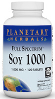 Soy's Secret for Women's Health Our endocrine system evolved in an environment without synthetic chemicals. Unfortunately, today we're surrounded by artificial hormone-mimicking compounds that disrupt the subtle biological processes that determine growth and reproduction. Receptors on our cells meant to receive natural hormones can also accept other molecules, placing our systems under duress. Fortunately, certain plants contain estrogen like compounds that are also accepted by hormone receptors - but with beneficial effects. Soybean contains the isoflavone genistein, which can help regulate and maintain normal menstrual cycles and menopausal transitions. Planetary Herbals Full Spectrum Soy 1000 is a concentrated form of the essence of the soybean.