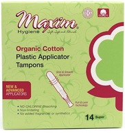 Maxim's Organic Cotton Plastic Applicator Tampons are designed to maximize comfort, ease of use and performance. They combine the health and eco-friendly advantages of organic cotton with the smoothness of a BPA-free plastic applicator. All of Maxim's Tampons are made with 100% Certified Organic and Chlorine Free cotton which means no added pesticides, dyes, fragrances, rayon, viscose or harmful chemicals.
