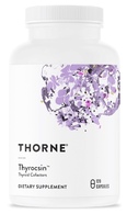 Thorne's Thyrocsin formula contains key ingredients for thyroid support, including iodine, which is necessary for formation of T4, and L-tyrosine, which is a necessary component of both T4 and T3 formation.* Animal studies have indicated that the Ayurvedic botanical, ashwagandha, can increase T4 concentrations.* Thyrocsin also includes several nutrient cofactors necessary for converting T4 to T3, including the minerals selenium, zinc, and copper.* Thyrocsin includes vitamin B12 because a deficiency of this vitamin appears to interfere with the activity of thyroid hormones.* Conversion of T4 to T3 can be inhibited by heavy metal toxicity and lipid peroxidation; hence, the inclusion of antioxidant vitamins C and E to counterbalance this inhibition.*
