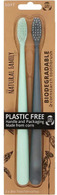 These toothbrushes and their packaging are completely biodegradable. The handle is made of cornstarch and is fitted with PBT bristles, which are BPA-free and recyclable. The toothbrushes are suitable for adults and children.