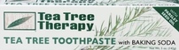 Tea Tree Therapy toothpaste provides both calcium carbonate and sodium bicarbonate for an all-natural dual cleaning system. Tea Tree Oil's natural antiseptic properties control the bacteria which causes plaque, decay and tartar. Parsley seed oil will naturally freshen your breath. There is no fluoride, mint, or artificial sweeteners. No SLS.