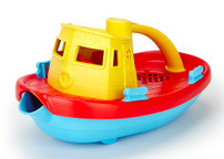Embark on a cruise across the bathtub. Navigate the wading pool. Even splash around in the occasional mud puddle. There's no end to the Good Green Fun younfg sailors can have with the Green Toys Tugboat. This colorful craft floats great, and has a wide spout to scoop and pour water. Made in the USA from 100% recycled plastic milk containers that save energy and reduce greenhouse gas emissions, our trusty Tugboat is both good for the earth, and - most importantly - safe for the busy little folks who play there.