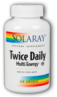 Twice Daily MultiEnergy™ Multi-Vita-Min™ dietary supplement. Twice Daily is one of Solaray's popular Multi-VitaMins™. Two capsules provide a full spectrum of vitamins and minerals. This highly advanced formula contains mineral amino acid chelates for enhanced bioavailability, antioxidants for protection from free radical damage and B vitamins for energy support.