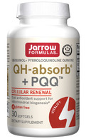 Jarrow Formulas® QH-absorb® + PQQ™ combines Ubiquinol, the active antioxidant form of Co-Q10 that has been shown to be better absorbed, with PQQ, to promote mitochondrial biogenesis (the creation of new mitochondria), providing dual antioxidant support for mitochondrial health, efficient cellular energy production, and healthy cardiovascular function.*