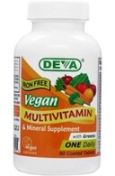 Get a wide variety of essential vitamins and minerals your body needs with DEVA Vegan Multivitamin. Balanced, multiple vitamin and mineral formula supplemented with green foods/special herbs formulated without animal derivatives making it suitable for vegans / vegetarians. DEVA Nutrition is pleased to offer this high potency, balanced multiple vitamin and mineral suitable for vegans, vegetarians and, anyone who prefers an animal-free multivitamin supplement for their nutritional needs. Besides a wide range of essential vitamins and minerals provided at 100% DV or more, Vitamin B-12 is provided at 100 mcg per serving (4167% DV) who feel taking these nutrients on a regular basis is important for their health and well being. It contains no iron for those who seek an iron-free multivitamin.