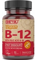 Vitamin B12 is highly beneficial in various forms but DEVA Fast Dissolve B-12 contains only one form: Methylcobalamin. Methylcobalamin, the coenzyme form of vitamin B12 is a body-friendly version and can be used in its normal form. This product comes as a small fast disintegrating tablet that can dissolve in the mouth before swallowing so people who have difficulty swallowing pills can take it easily as well. Each fast dissolve lozenge tablet provides 1000 mcg (41,667% of Daily Value) to ensure adequate intake. Deva B12 lozenges are also a potent source of Vitamin B6 and Folic Acid for those who want to combine the three vitamins for added benefits. Tablets are pleasant tasting, dissolve in a short amount of time and, can also be chewed if desired.