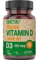 supplement that provides 5000 IU (125 mcg) of vegan suitable vitamin D3 (cholecalciferol) per tablet. This new vegan D3 option is important because most commercial vitamin D3 products are made from lanolin, which usually comes from sheep's wool, something obviously not vegan. However, Deva uses a plant (lichen) derived cholecalciferol in this product for vegans and vegetarians who prefer Vitamin D3 in supplementation.