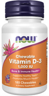 NOW® Chewable Vitamin D-3 supplies this key vitamin in a tasty chewable form. Vitamin D is normally obtained from the diet or produced by the skin from the ultraviolet energy of the sun. However, it is not abundant in food. As more people avoid sun exposure, vitamin D supplementation becomes even more necessary to ensure that your body receives an adequate supply.