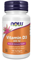 NOW® Vitamin D3 softgels supply this key vitamin in a highly absorbable liquid softgel form. Vitamin D is normally obtained from the diet or produced by the skin from the ultraviolet energy of the sun. However, it is not abundant in food. As more people avoid sun exposure, vitamin D supplementation becomes even more necessary to ensure that your body receives an adequate supply.