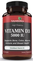Futurebiotics Vitamin D3 5000 IU is a small, easy-to-swallow softgel that is a great way to help replenish the body's vitamin D status. Furthermore, research as shown that vitamin D supports bone, colon, muscle, immune and breast health.*