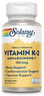Each 1-VegCap serving of Solaray Triple Strength Vitamin K-2 provides 150 mcg of vitamin K as menaquinone-7 (MK-7) from sun-grown, natural-source chickpea. MK-7 may last longer in the body and is more bioavailable than other forms of K-2 for optimal support. Just another reason the sun does it better!