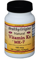 Healthy Origins® Vitamin K2 (from Natto) provides Vitamin K2 in its most biologically active form called Menaquinone 7 or MK-7 for short. Vitamin K2 as MK-7 has superior absorption or retention in the body when compared to K1 - the typical supplemental form. Natural Vitamin K2 may help to support bone health, cardiovascular health, calcium metabolism and arterial health.
