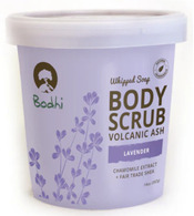 Whipped Soap Body Scrub Volcanic Ash (Lavender) is a unique body scrub that combines the exfoliating properties of volcanic ash with the soothing fragrance of lavender. It claims to gently cleanse and exfoliate the skin, leaving it soft and smooth.
